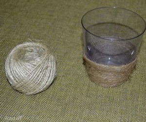 Сейчас применяйте шпагат наиболее ясного оттенка и продолжайте обматывать стакан.