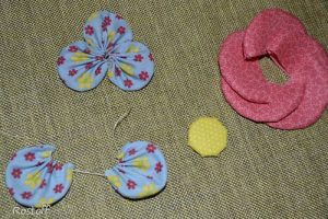 Вырежьте из лоскутков ткани по 5 кругов на один-одинешенек цветок диаметром 8 сантим.. Сейчас круги поделите пополам.