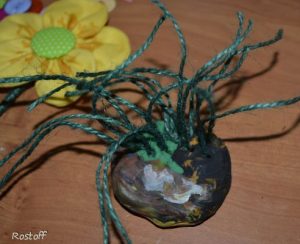 Сейчас в кус пластилина посадите траву с помощью шпажки. Нитки обязаны водиться высокими, так как этот комок уберется в стакан. Гуще сажать траву не располагает смысла, генеральное, чтоб в стаканчике не водилось видно начала-пластилина.